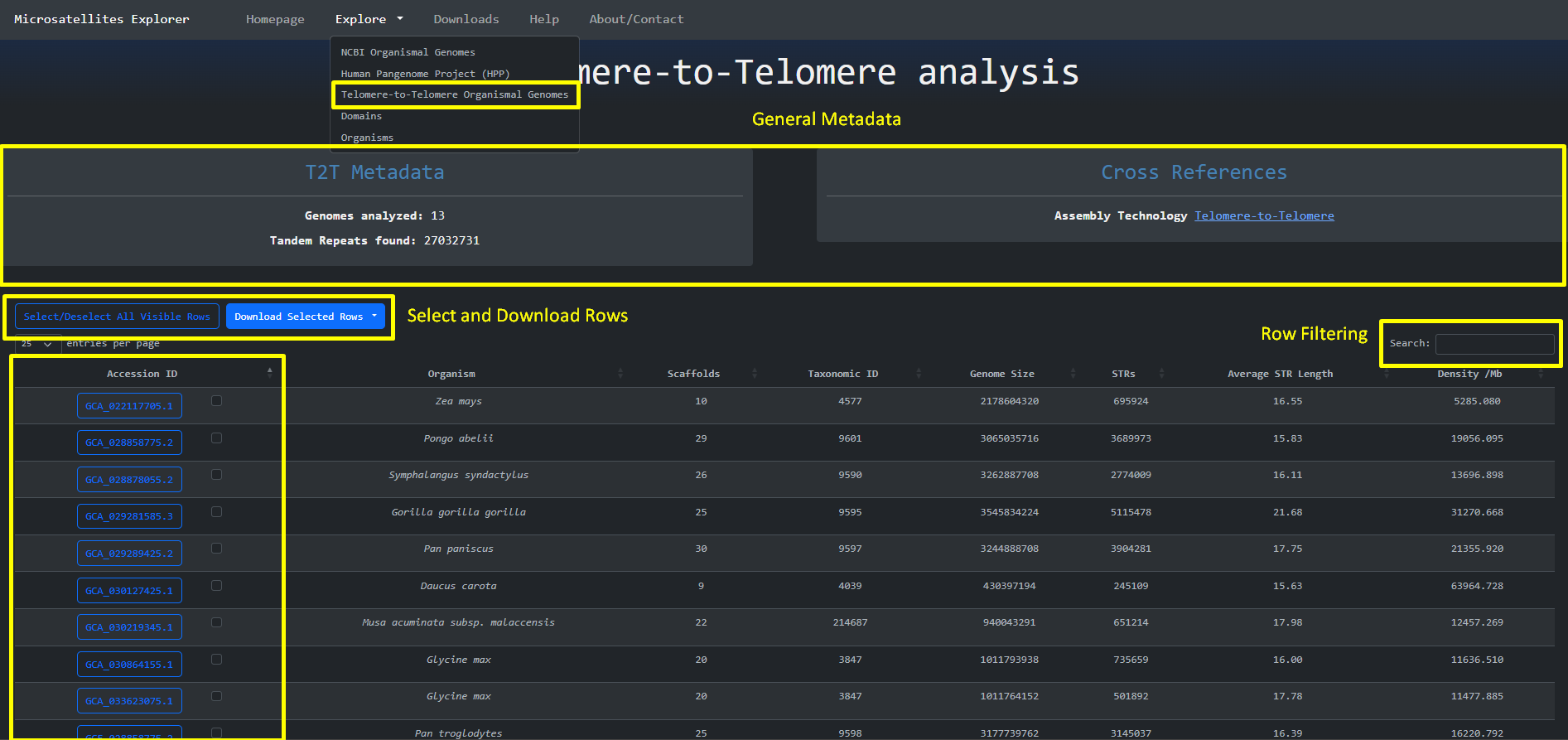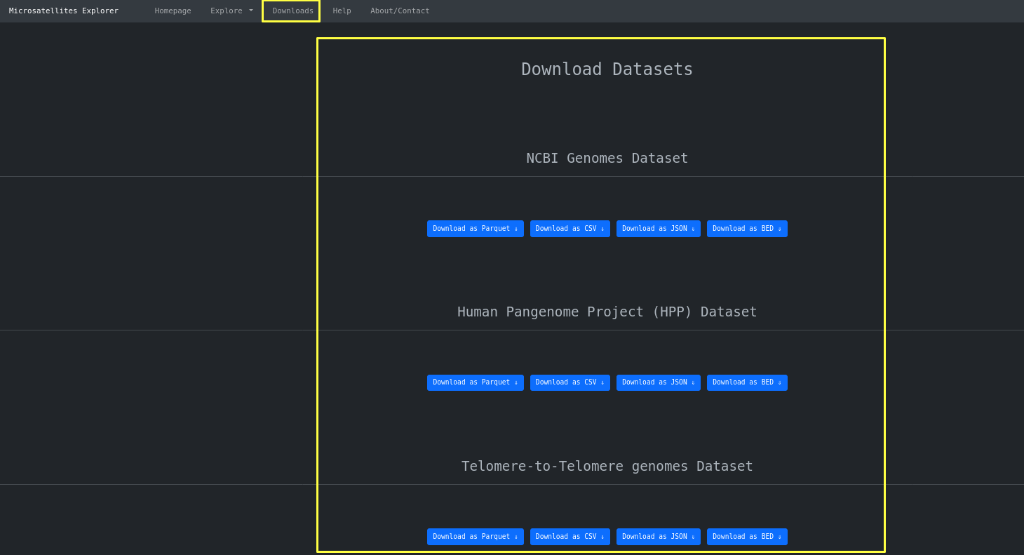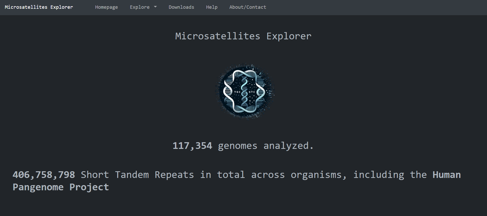 This is the homepage of Microsatellites Explorer. It is comprised of high level metadata about the