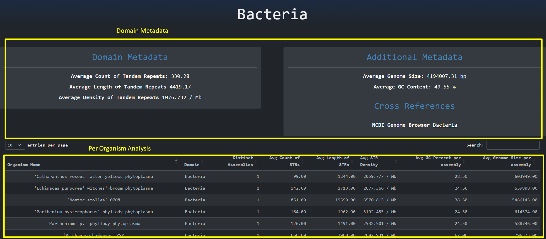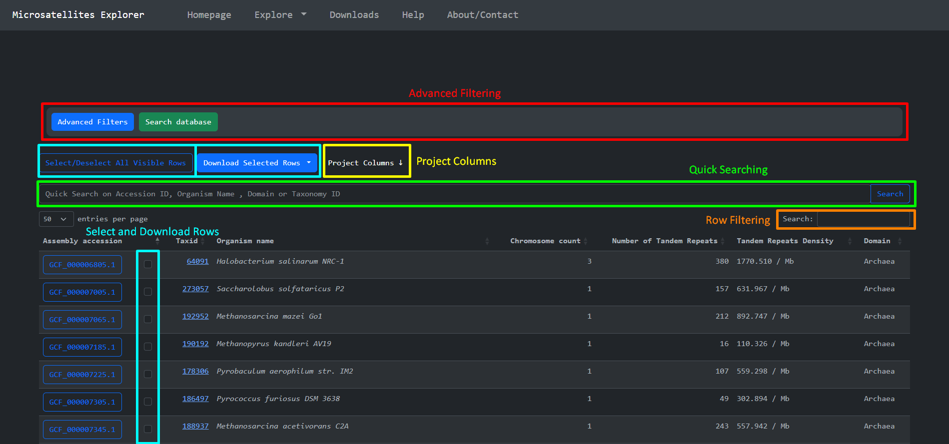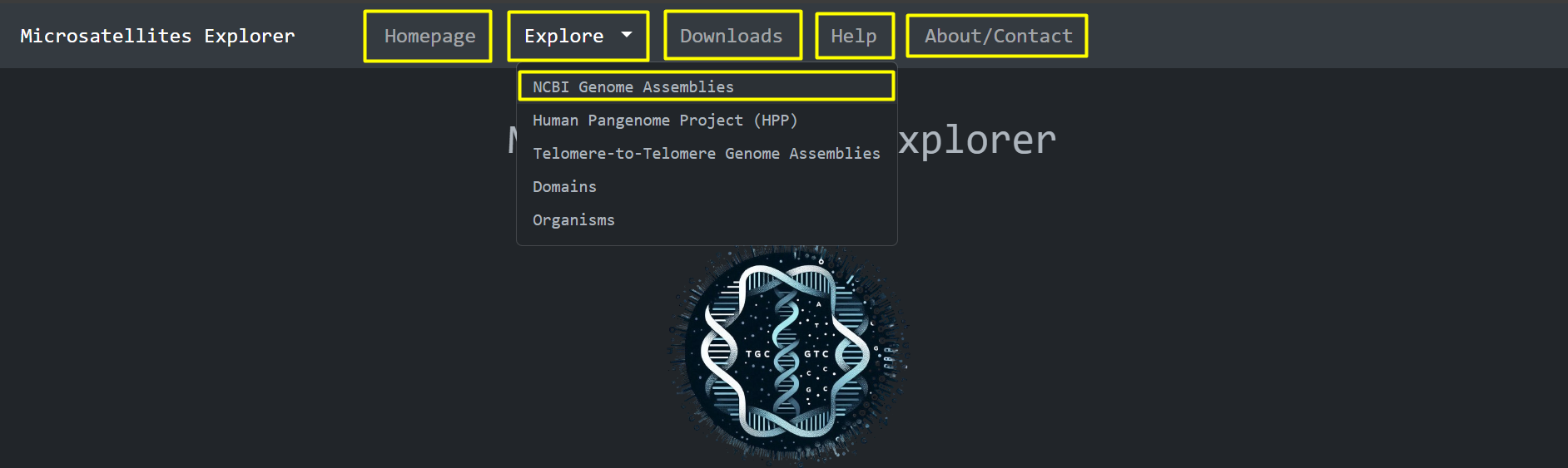 This is the homepage of Microsatellites Explorer. It is comprised of high level metadata about the