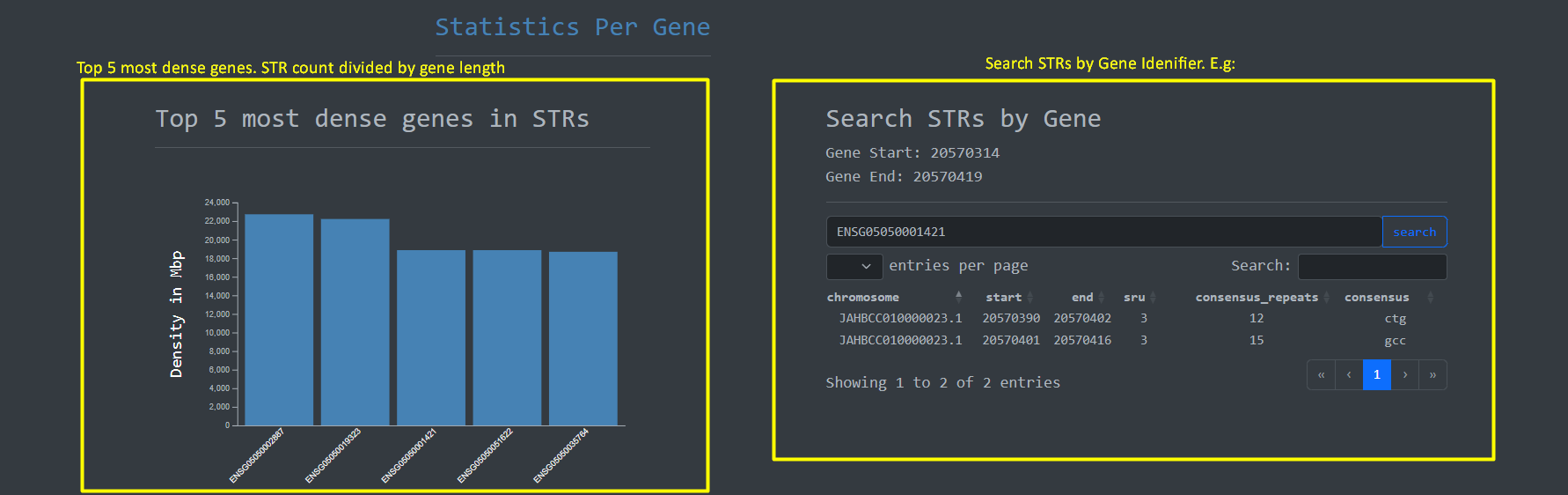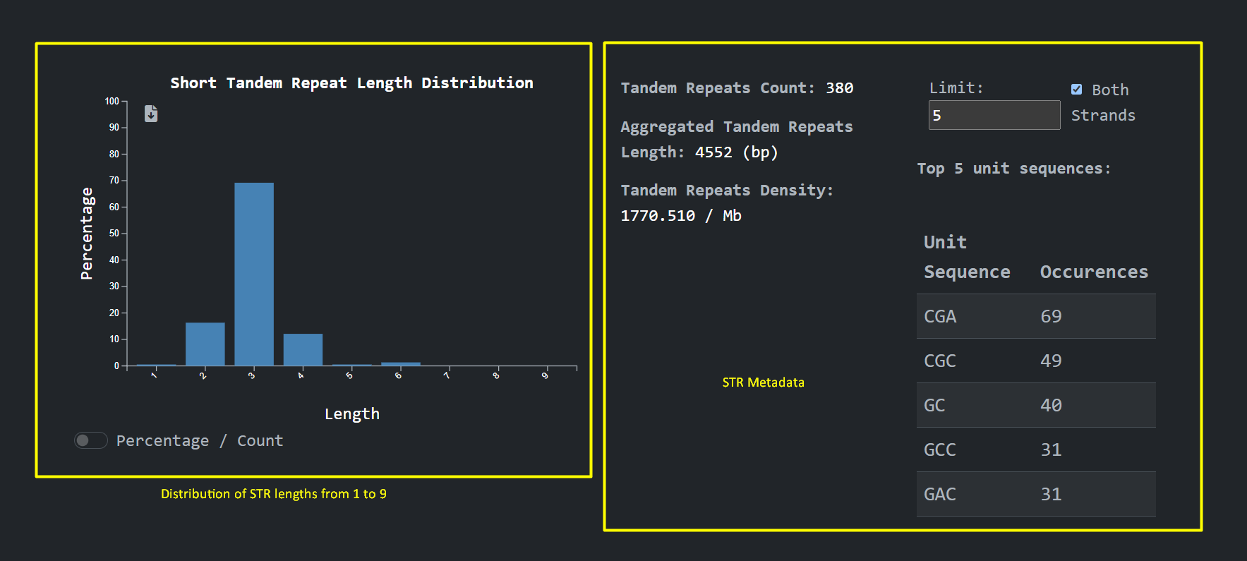 Given the importance of genes on the human genome we implemented a feature to perform Short Tandem Repeat