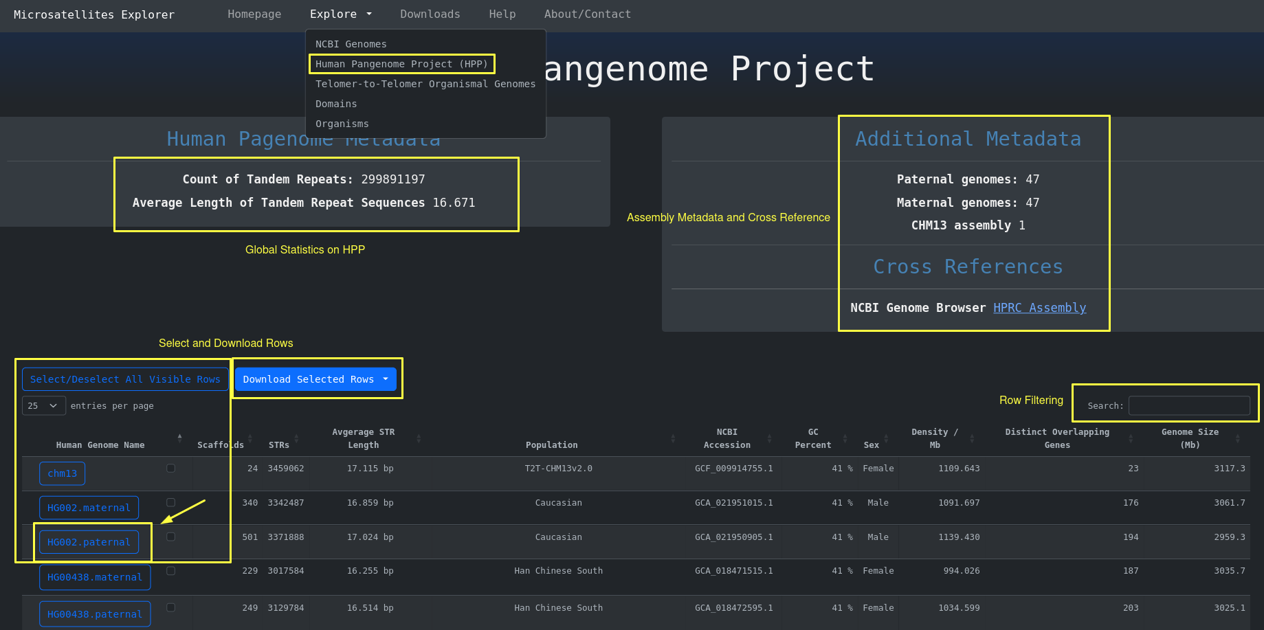In order to access the Human Pangenome Table with the 95 human genomes including their STR metadata you go