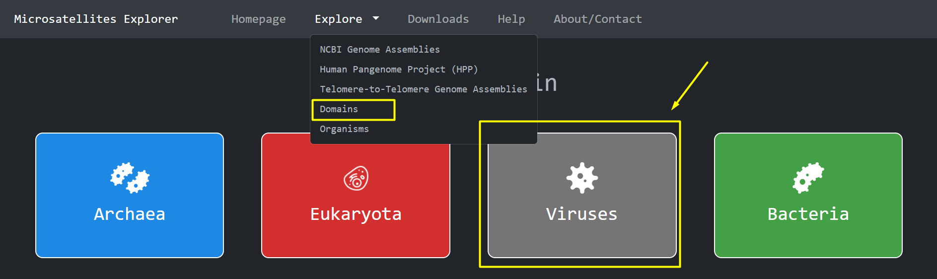 Another way to access the different domains is through the Navigation Bar > Explore Domains