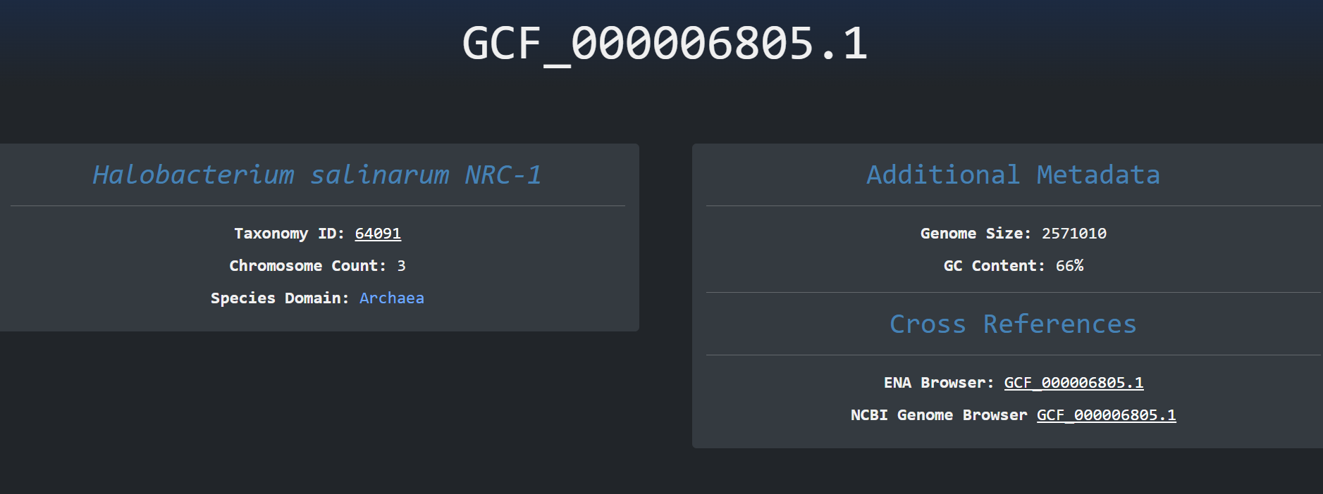 We can then navigate to the specific assembly by clicking the blue button with the accession_id on the left